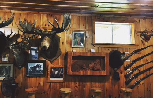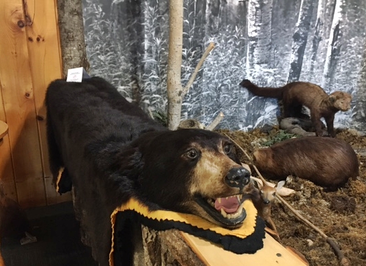 They remind people that to get wood, you have to go into the woods! Thus, the vintage Canadian taxidermy.