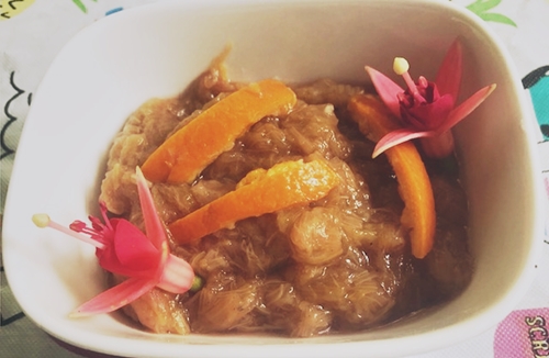 Though Farmer Lee Jones doesn’t grow fruit, he does collaborate with preferred area farmers and in this box was rhubarb! I’ve always seen rhubarb paired with strawberries, but I didn’t have any. I had never cooked with it and was shocked at how easy it is. I had a recipe that said to stew it for 15 minutes, but I say 10 is plenty. Chop it up, add a touch of water and sugar. I always keep citrus peels in my freezer from the winter time. I added them and garnished with The Chef’s Garden edible micro flowers. Such a simple treat!
