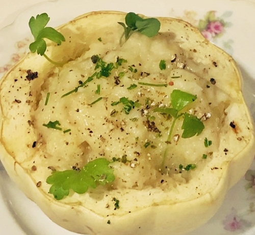 Here’s another version of Mashed Potato squash done as a twice-baked with cheddar.