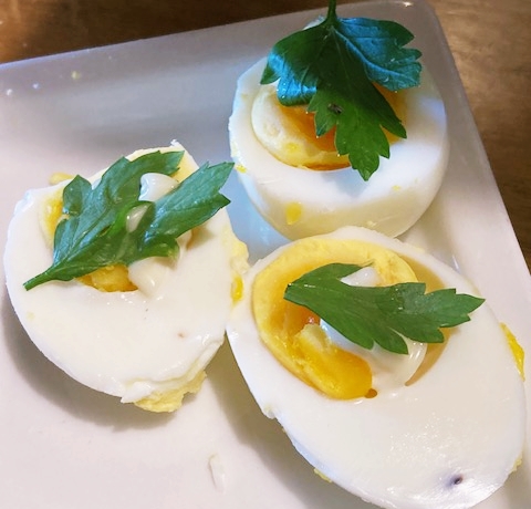 I felt like I needed some solid protein to start the day and got it with medium-boiled eggs.