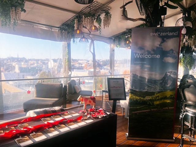 With the Swiss, I saw a presentation of magnificent mountains, sightseeing trains, gastronomy and white wines. It looks like heaven! But not the parasailing folks — not my idea of heaven!