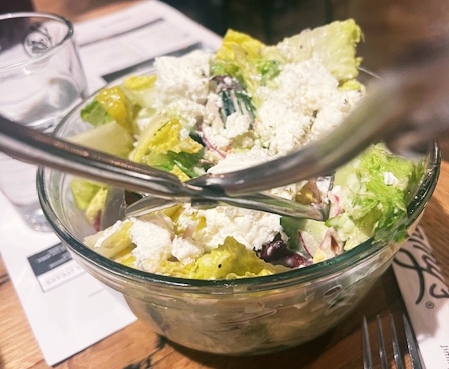 And here’s another divine salad: their Greek salad. It’s got a rich, creamy and simple dressing, no harsh vinegars or weird herbs. There’s lots a particularly creamy feta cheese variety, pepperoncini, olives and Romaine lettuce.