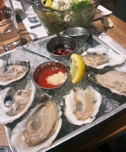 A reason why here and nowhere else: Jimmy’s Famous Seafood has a couple of oyster varieties that are exclusively theirs. I once went on a boat with an oyster man in Prince Edward Island who did that kind of work. He had his little next step up from a canoe, red flags where he marked out his territory. I tried the Bayside Bays from Rappahannock River, Virginia. Did you know that George Washington is said to have thrown a Spanish silver dollar across it? These oysters are clean with tons of “liquor”, a good hit of salt. They have very deep cups. They’re served with lemon, cocktail sauce with an extra dollop of horseradish, mignonette with with substantial shallot pieces.