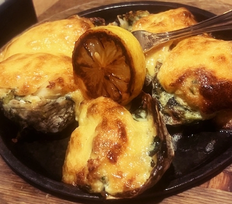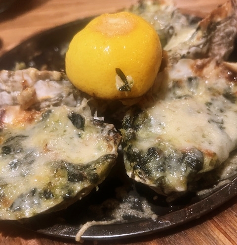Then came time to try oysters dressed up. Oysters Rockerfeller are a traditional dish with good portions of the good stuff: creamy, cheese, with a touch of Pernod. Or, you can take it to the next level with Jimmy’s Oysters, stuffed with creamed spinach and decadent Crab Imperial.
