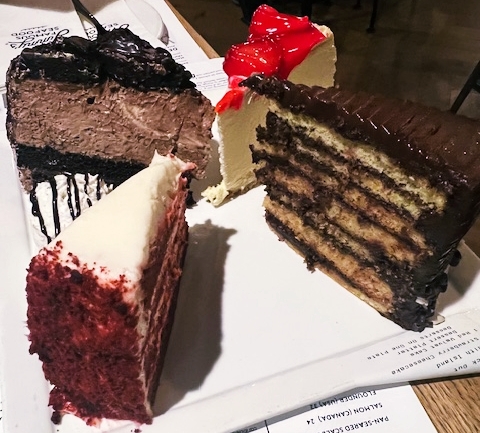 It’s kind of known that in most Baltimore restaurants, the dessert is an afterthought and if you have something good in the freezer, you’re better off sticking with that. But Jimmy’s has its own dessert recipes and right away, you notice something different: they aren’t gooey or overly sweet. Whipped cream is fresh, cakes are incredibly moist (how do they do that?). Red Velvet Cake with cream frosting is an old Southern favorite. Chocolate Blackout Cake has dense chocolate cake, ganache, fudge and brownies. It is a billion jillion (Woody Guthrie’s favorite number) times better than a chocolate lava cake. Smith Island Cake is the state cake of Maryland. Originating on Smith Island, where they still have an Elizabethan dialect and fish for seafood, I think (shh, don’t hurt the little island ladies’ feelings!) Jimmy’s is the winner. Their vanilla cake is rich and super moist, the frosting is less sugar-icing. They have several varieties of cheesecake and I hear that strawberry is a real favorite. This cheesecake is very dense. I taste cream and sour cream, the flavors stand out.